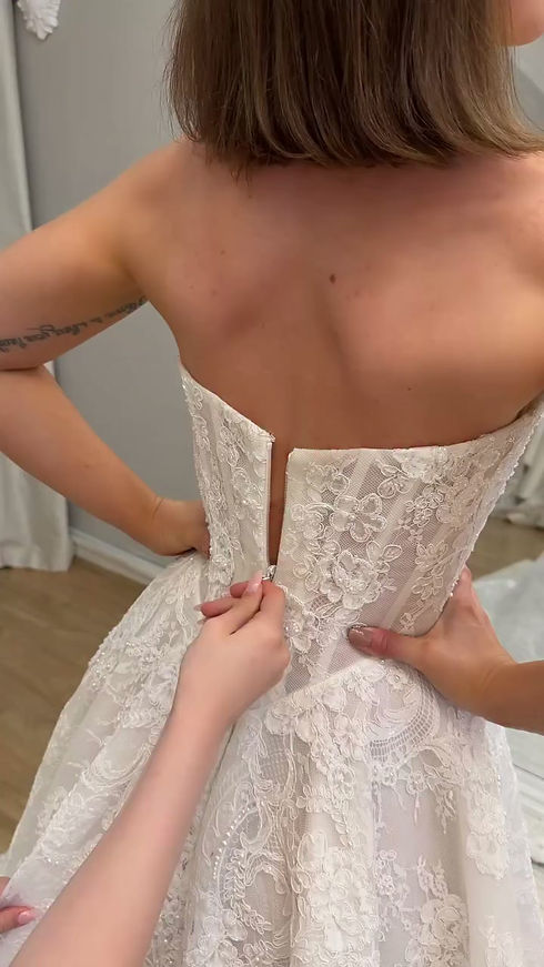 Real bridal work starts with how the dress lives on the bride.